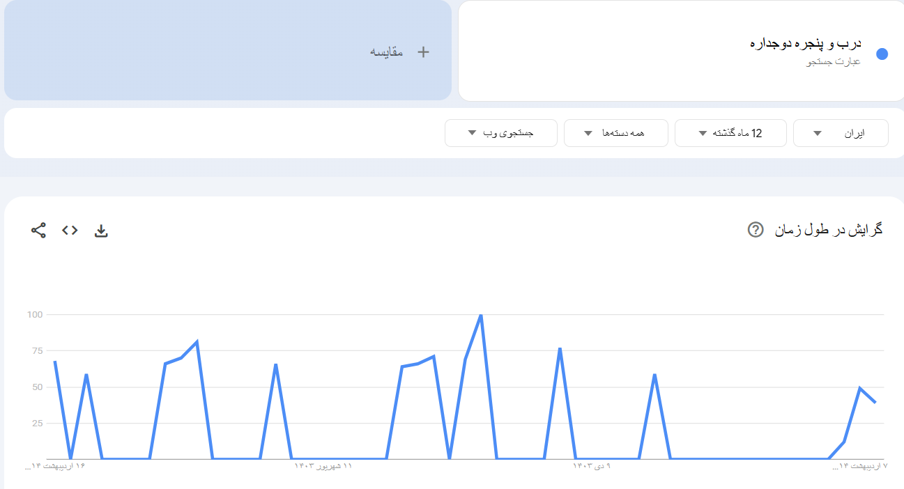 بررسی آمار جستجوی کلمه کلیدی “درب و پنجره دوجداره” در گوگل