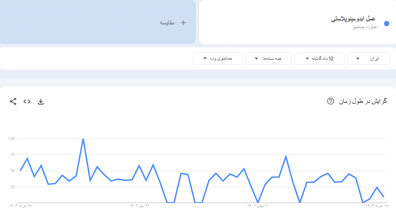 پیش از هرگونه سرمایه گذاری در زمینه تبلیغات آنلاین و خرید بک لینک، بررسی دقیق آمار جستجوی کلمه کلیدی هدف در ابزارهای تحلیل رفتار کاربران ضروری است. Google Trends به عنوان معتبرترین منبع اطلاعاتی برای درک الگوهای جستجوی کاربران، امکان بررسی میزان علاقه مندی مردم به موضوع عمل ابدومینوپلاستی را فراهم می کند.