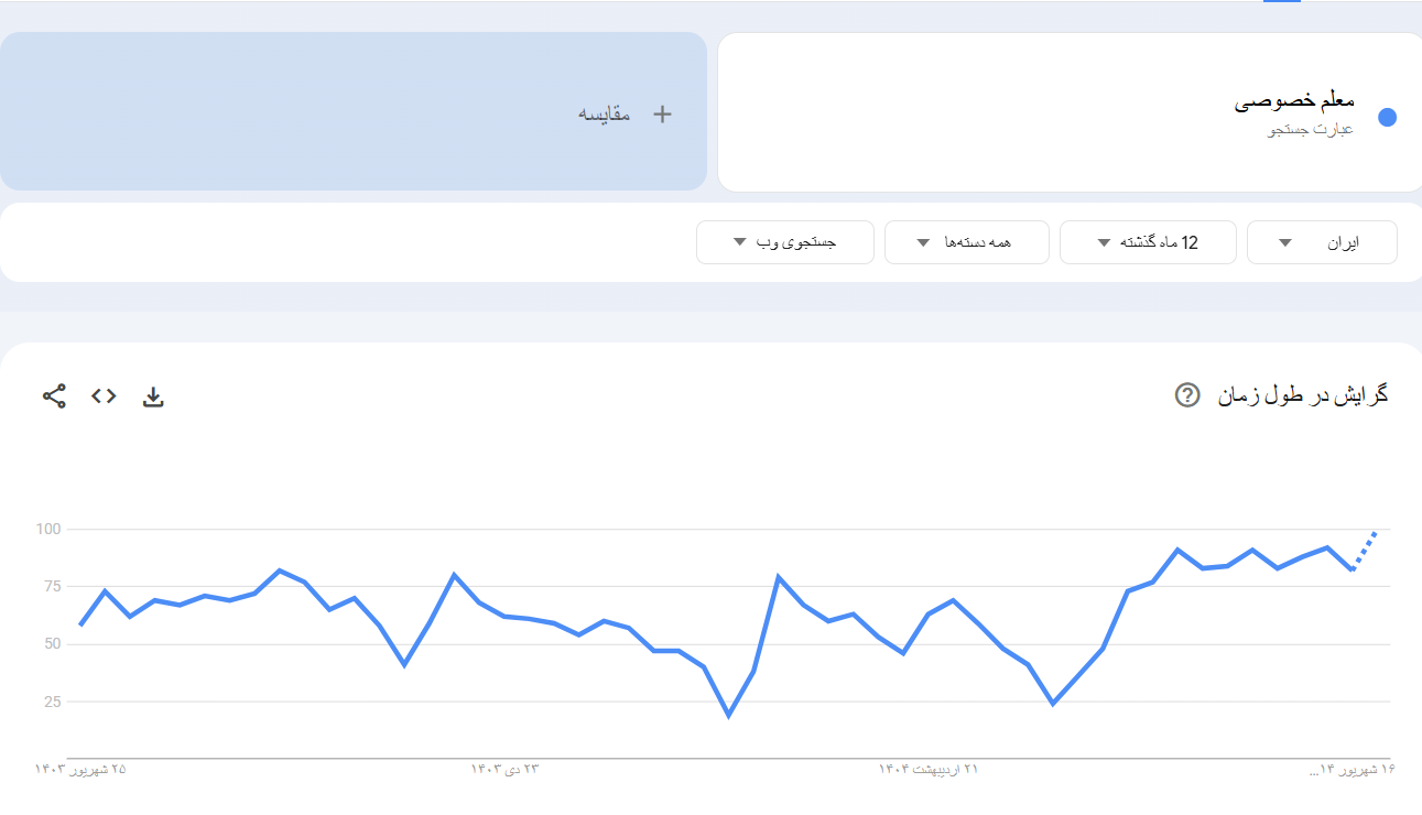 برای درک صحیح از پتانسیل کلمه کلیدی “معلم خصوصی”، استفاده از ابزارهای تحلیل کلمات کلیدی امری اجتناب ناپذیر است. گوگل ترندز به عنوان یکی از معتبرترین منابع اطلاعاتی، امکان بررسی دقیق میزان جستجوی این کلمه در بازه های زمانی مختلف را فراهم می کند.