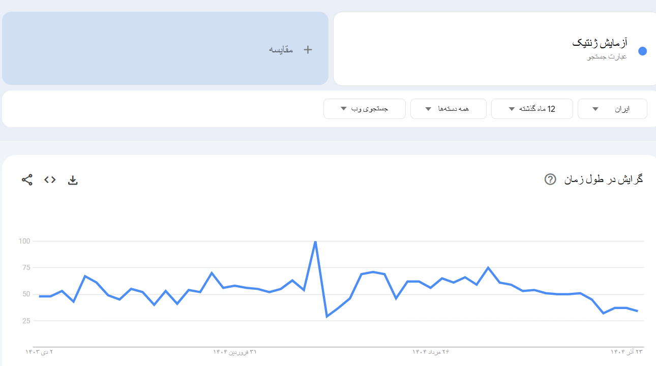 بررسی میزان جستجو و محبوبیت کلمه کلیدی “آزمایش ژنتیک”